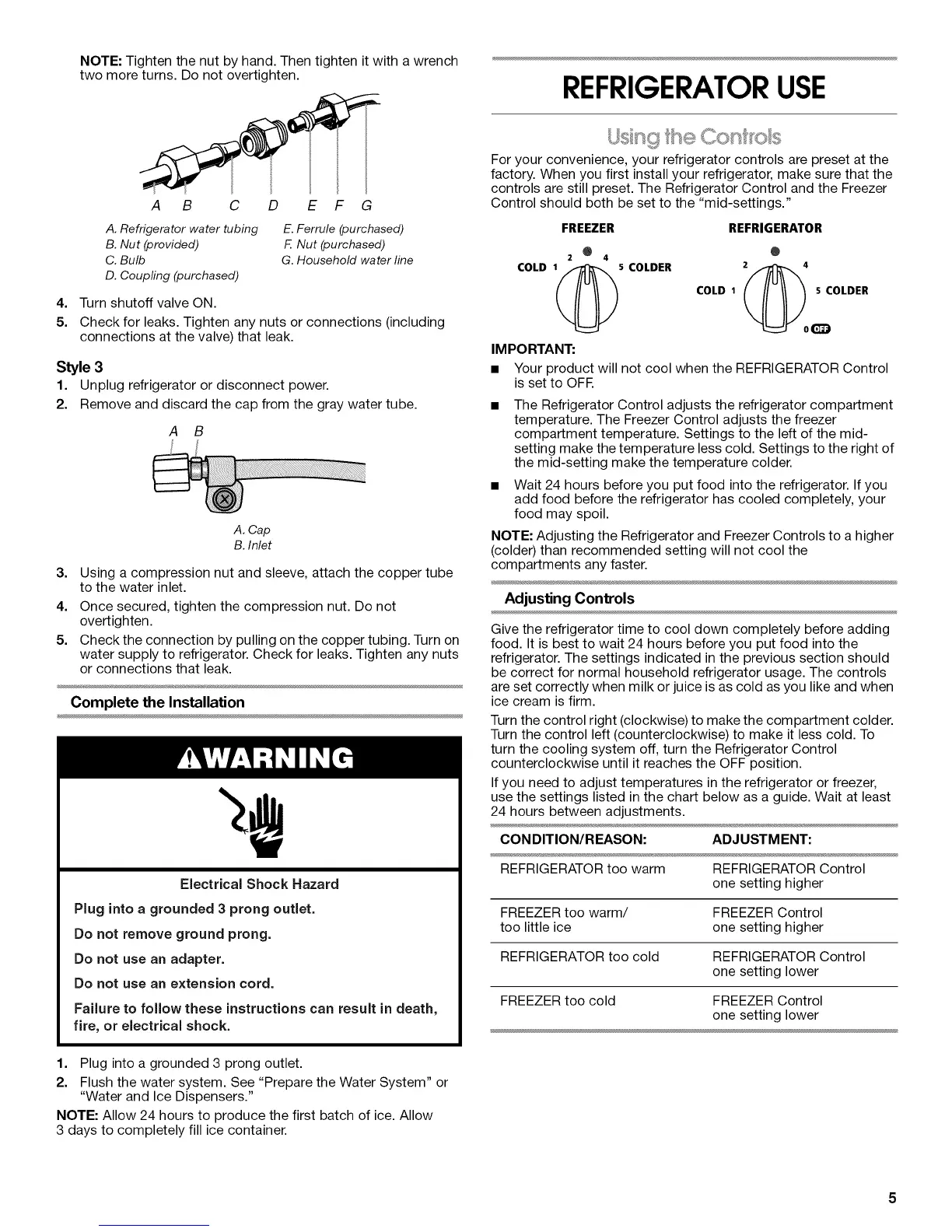 NOTE: Adjusting the Refrigerator and Freezer Controls to a higher
