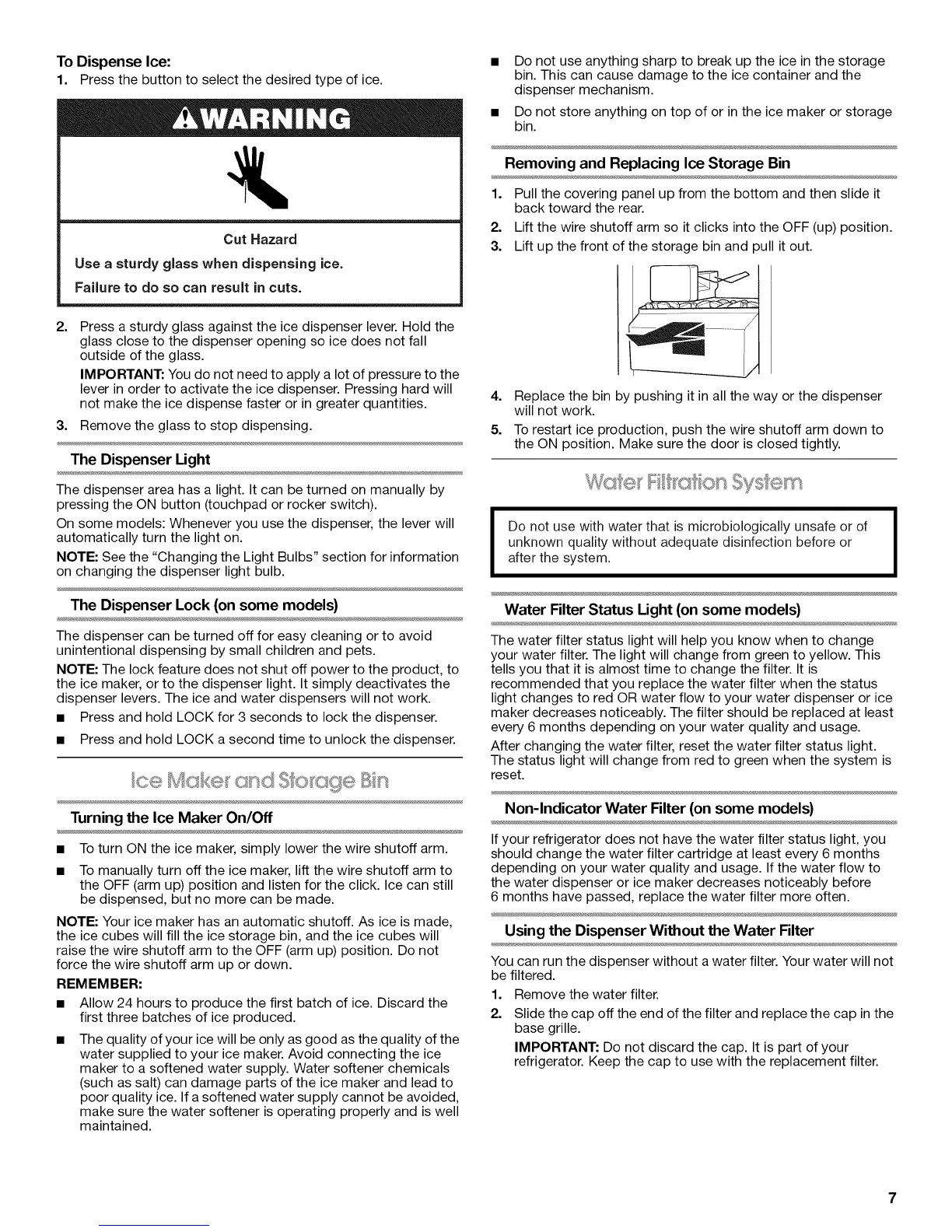 Using the Dispenser Without the Water Filter