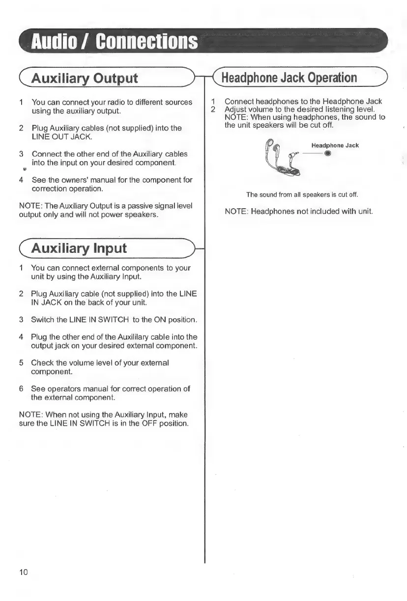 Crosley Tech Series - Audio;Connections; Auxiliary Output; Auxiliary PU Eu as; Headphone Jack Operation
