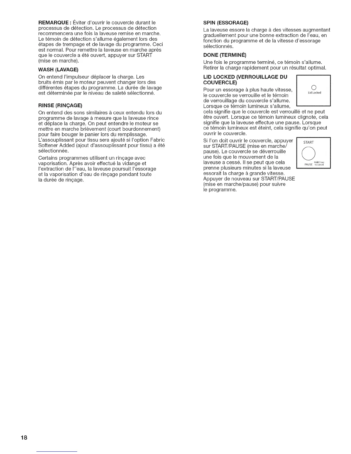 signifie que la laveuse effectue une pause. Lorsque
