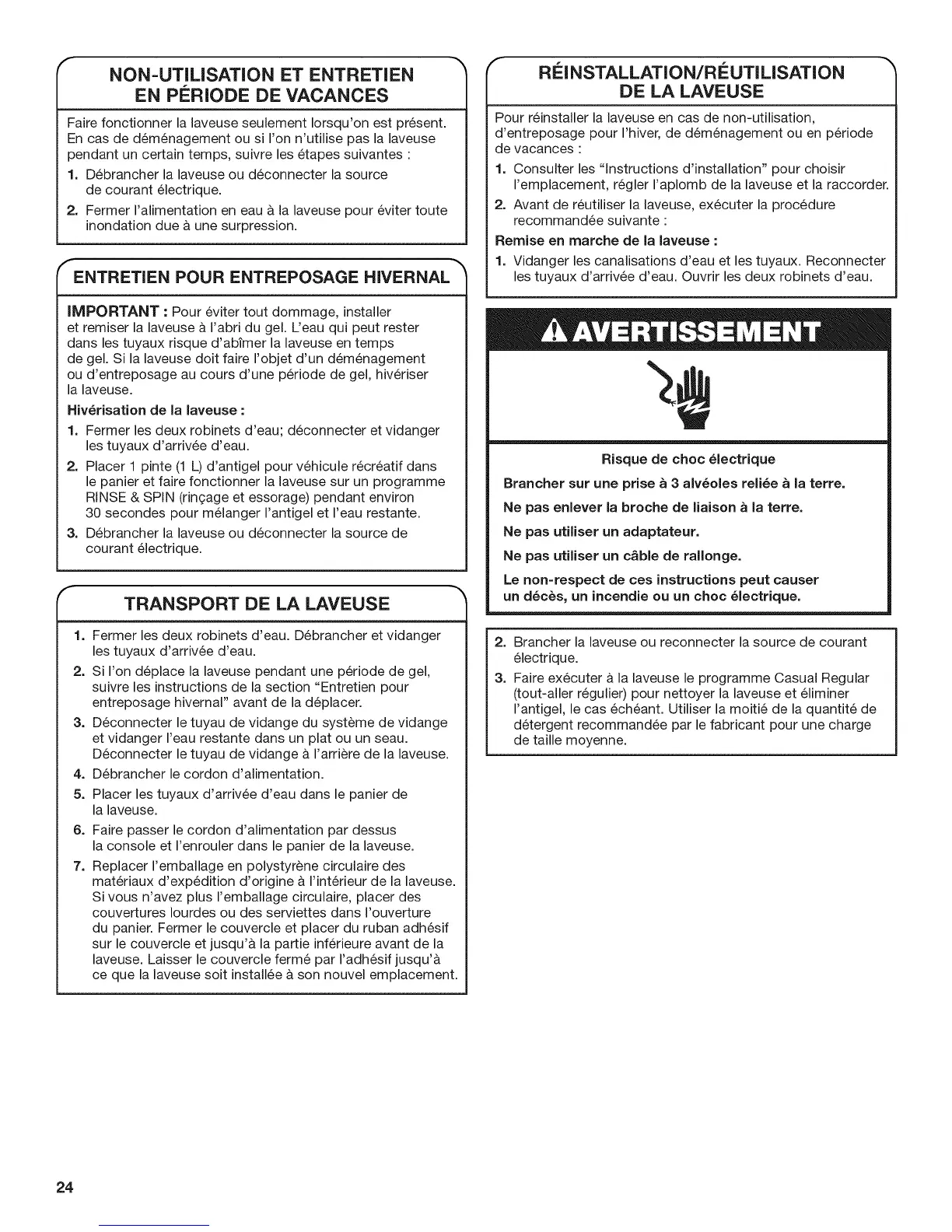 2. Si I'on d6place la laveuse pendant une p6riode de gel,