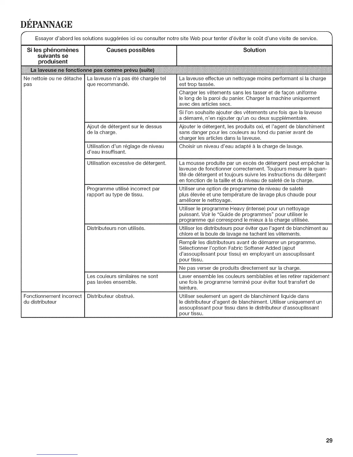 Essayer d'abord les solutions sugg6rees ici ou consulter notre site Web pour tenter d'eviter le coQt d'une visite de service.