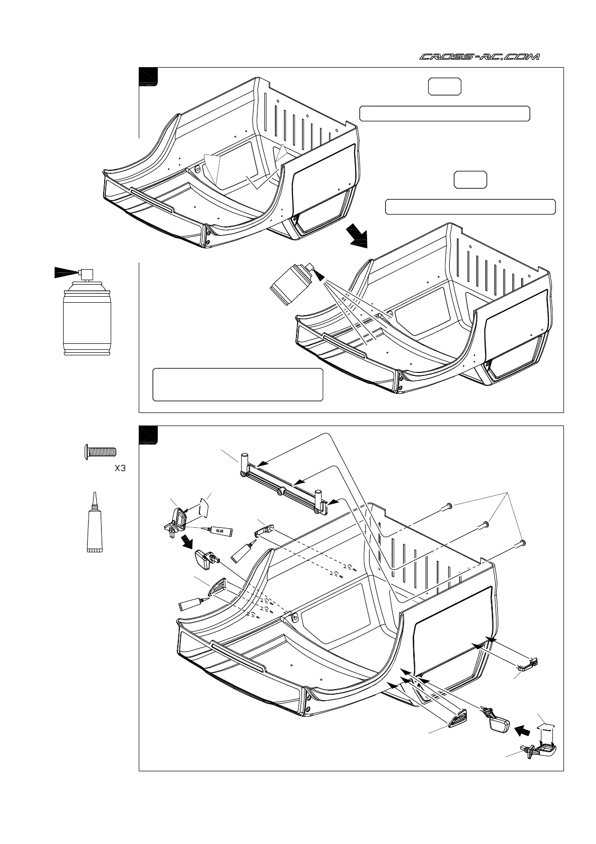 Paint the body with polycarbonate spray paints.