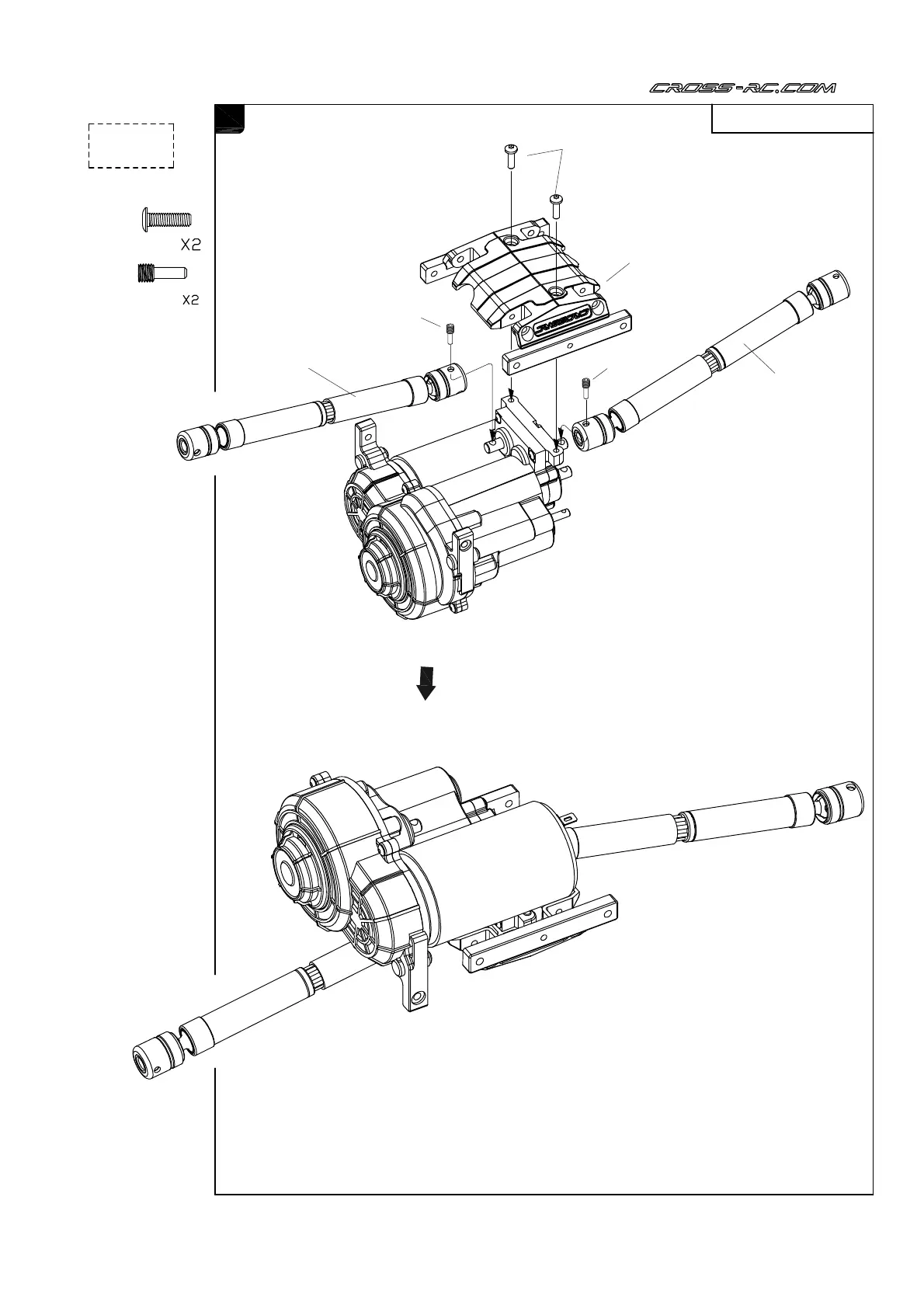 CROSS-RC EMO X3 - Chassis Assembly - Driveshaft Mounting; Driveshaft and Mount Attachment