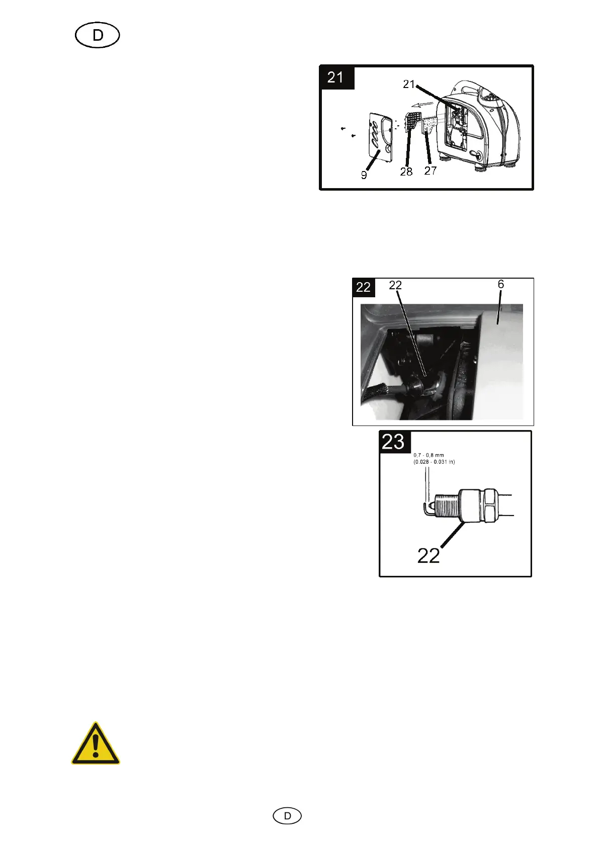 Zündkerze kann sehr heiß werden und den Generator möglicherweise