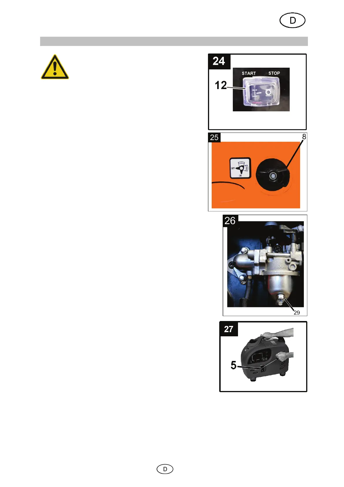 - Lösen Sie die Ablassschraube (29) des Vergasers