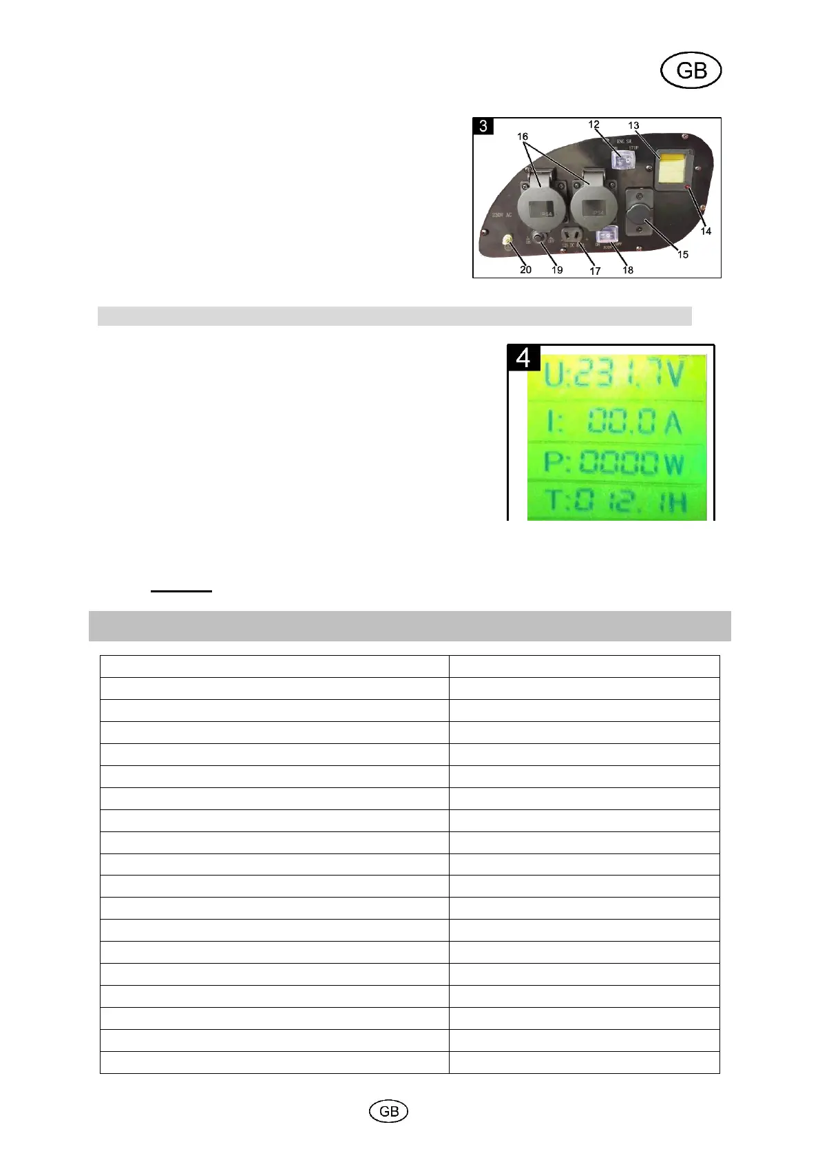 P = Display of the electrical