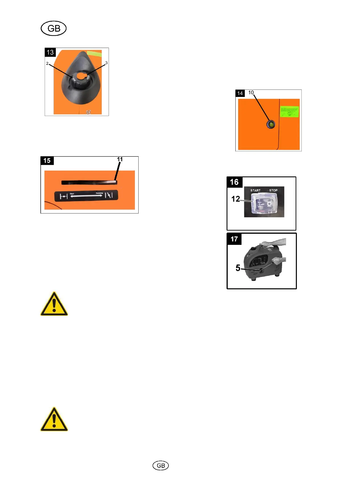 5. Set the start/stop switch (fig. 16, no. 12) to "START".