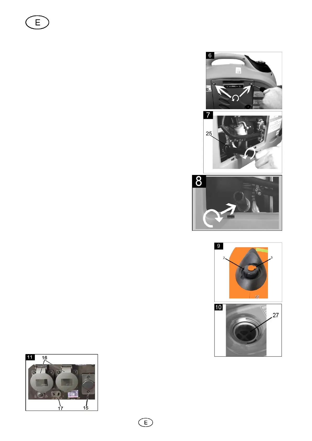 1. Compruebe el indicador del depósito (fig. 10 n.º 27) y llene el