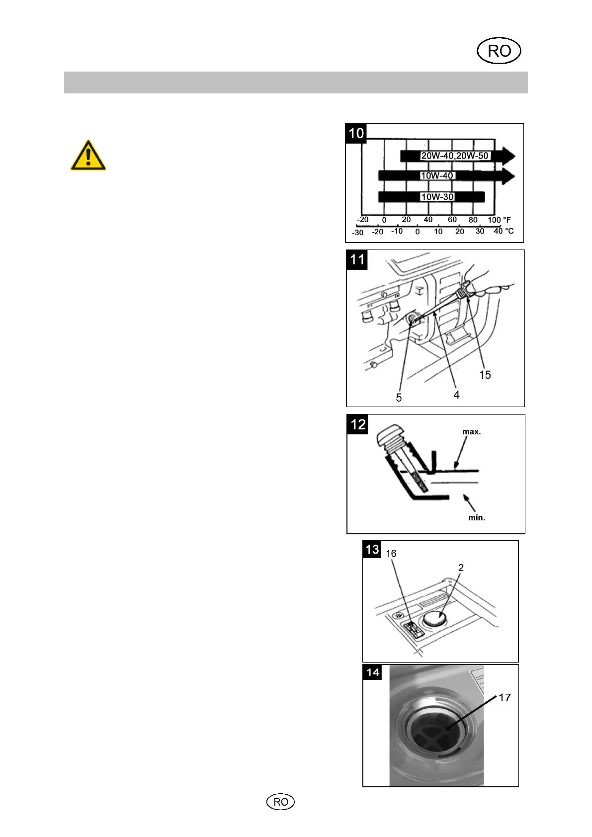 1. Deschideţi ştuţul de umplere cu ulei (15) şi