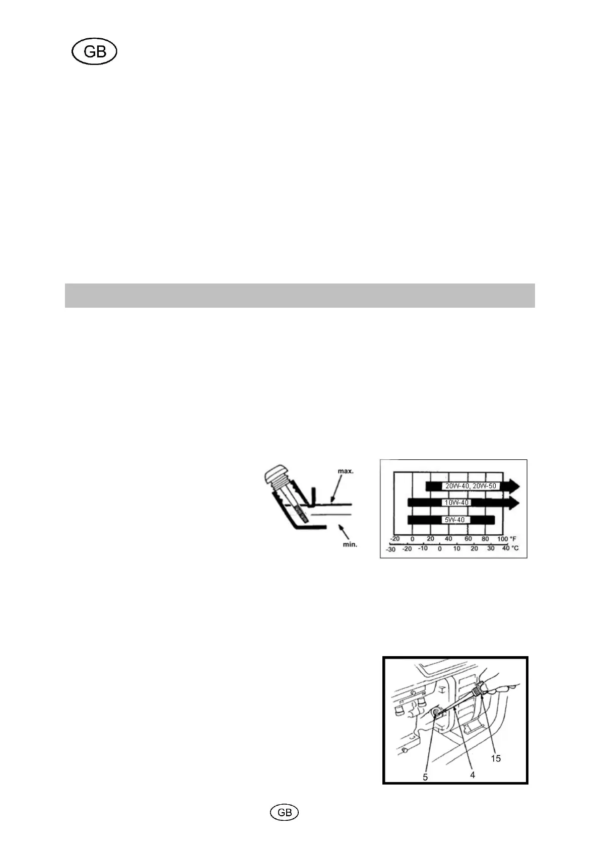 1. Unscrew the oil filler screw (no. 15) and clean the dipstick (no. 4) with a clean