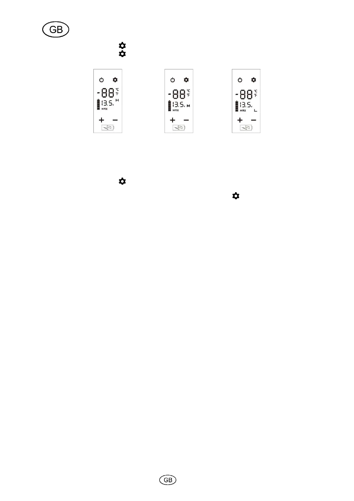 2. The battery monitor level (L, M, H) set starts flashing in the display.