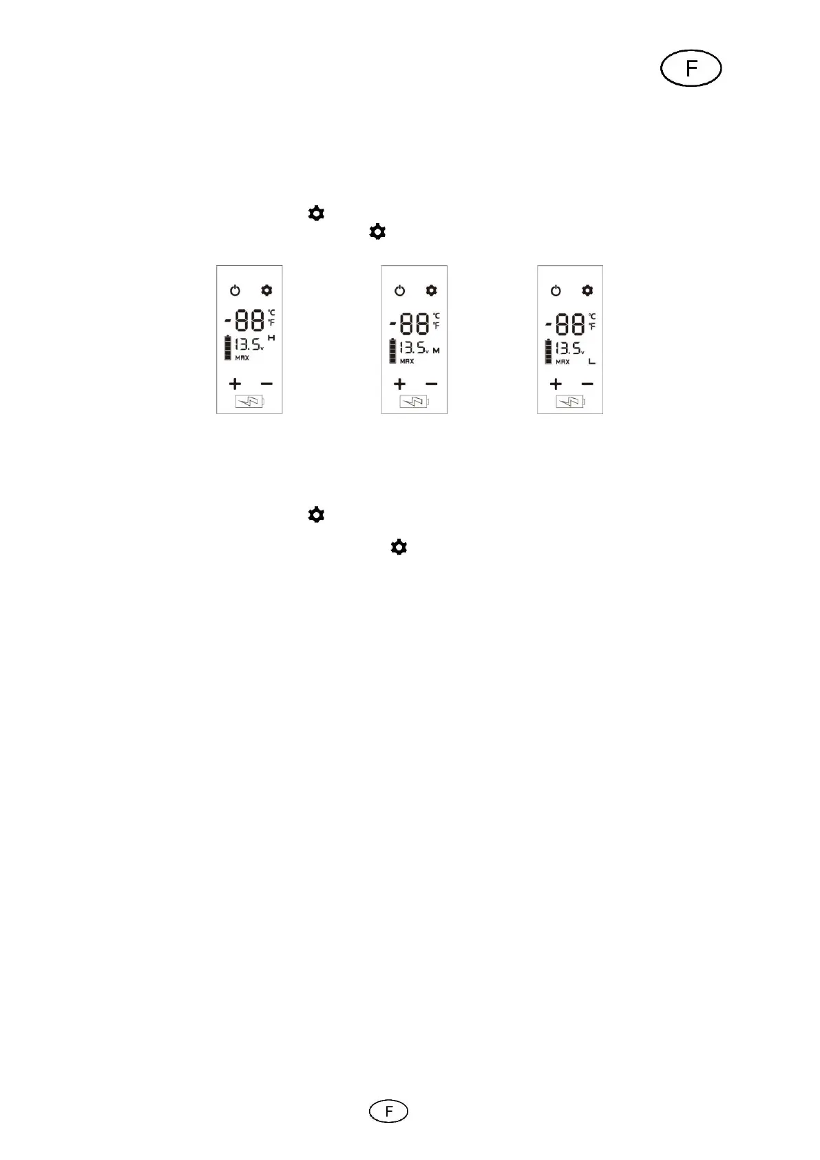 4. Les réglages suivants vous sont proposés : L = 9 V / M = 11,5 V / H = 12 V