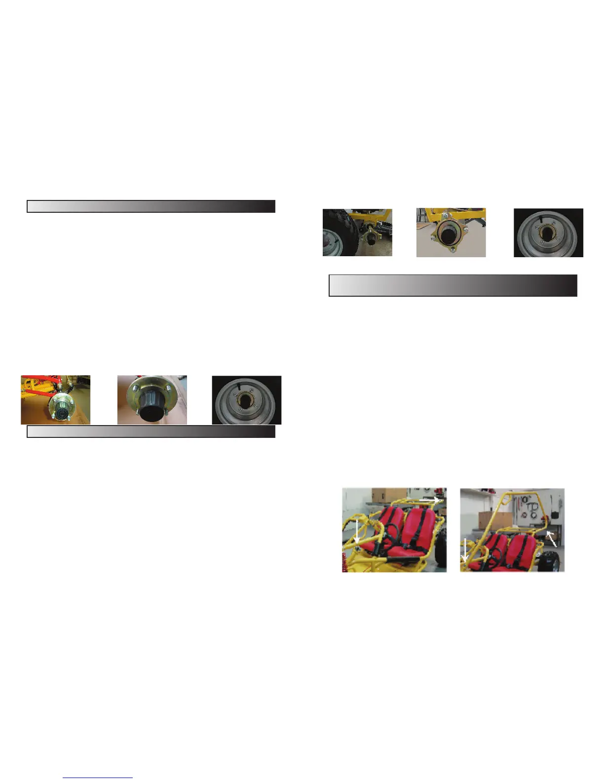 the rear wheel hubs. Place the nuts on the bolts and evenly tighten