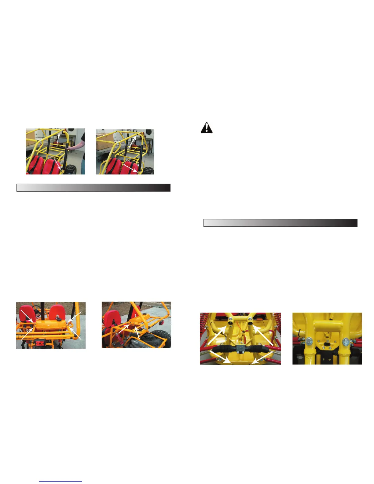 Standing behind the kart, locate the pre-drilled holes in the cross