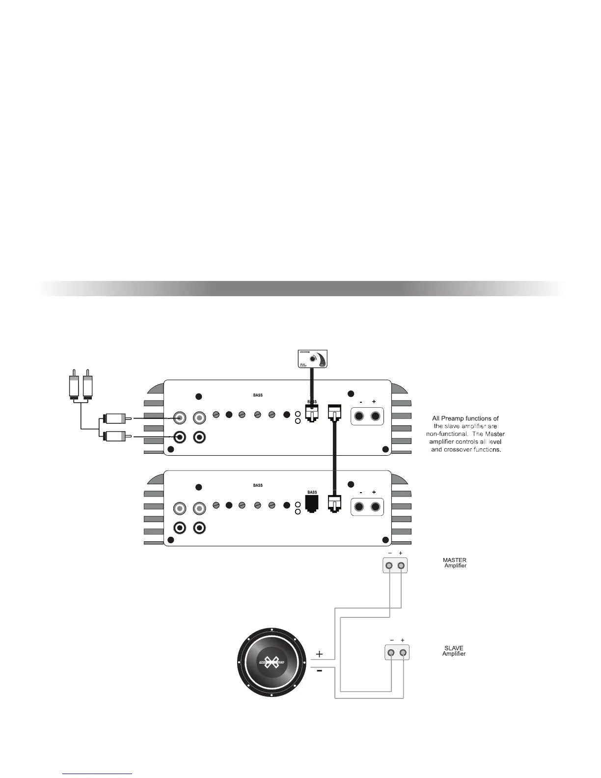 be bypassed. The amplifi er set on Master will then control all the preamp functions for both amplifi ers.