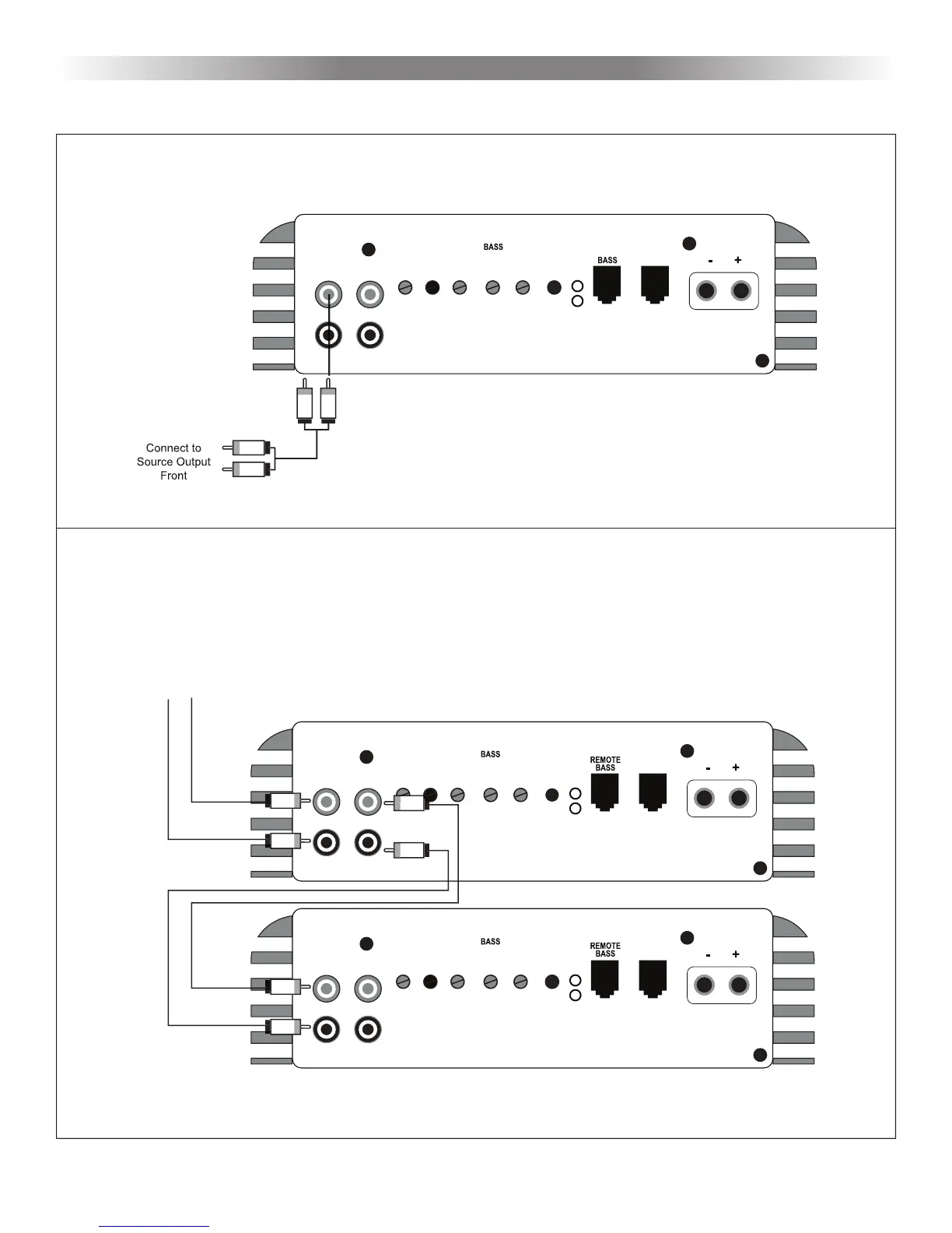 This example shows how to use 1 single pre-amp output to run dual amplifi ers by