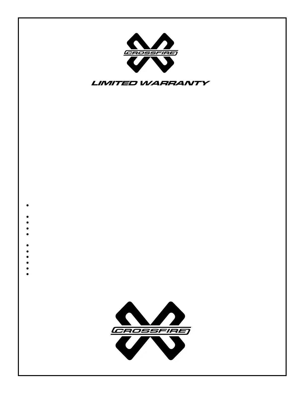 Crossfire agrees to repair or replace all Crossfire products which are defective in materia l