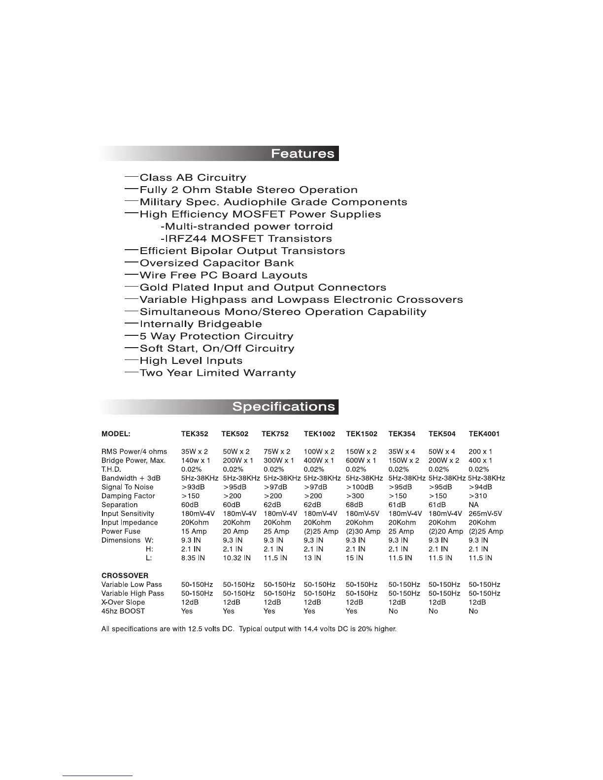 Crossfire TEK75.2 - REMOTE TURN-ON; SPEAKER OUTPUT; LOAD; WIRING