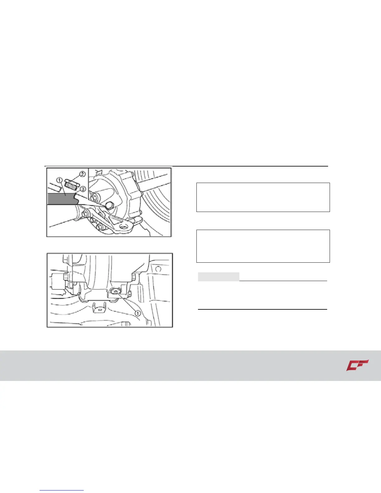 1. Final gear oil 2. Final gear oil filler bolt 3. Proper oil level