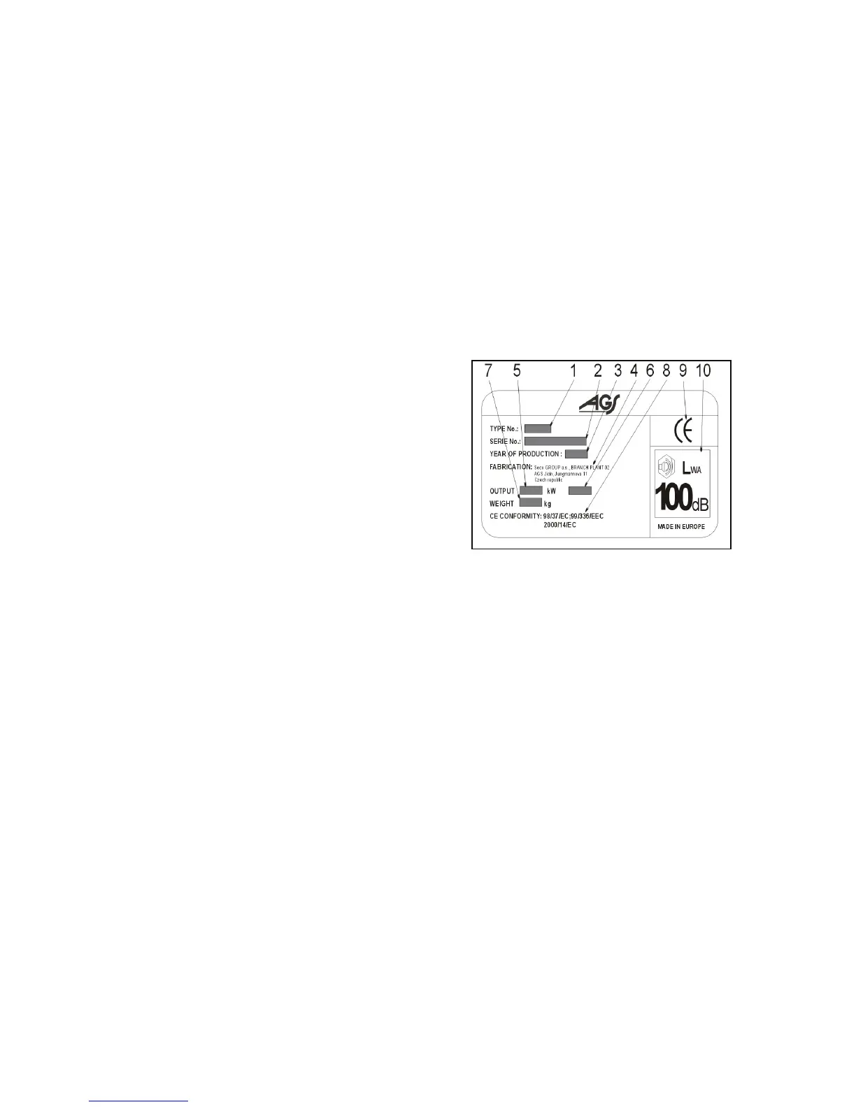 Ogni falciatrice semovente è dotata da una targhetta di fabbricazione ubicata sotto il sedile. Riporta i seguenti