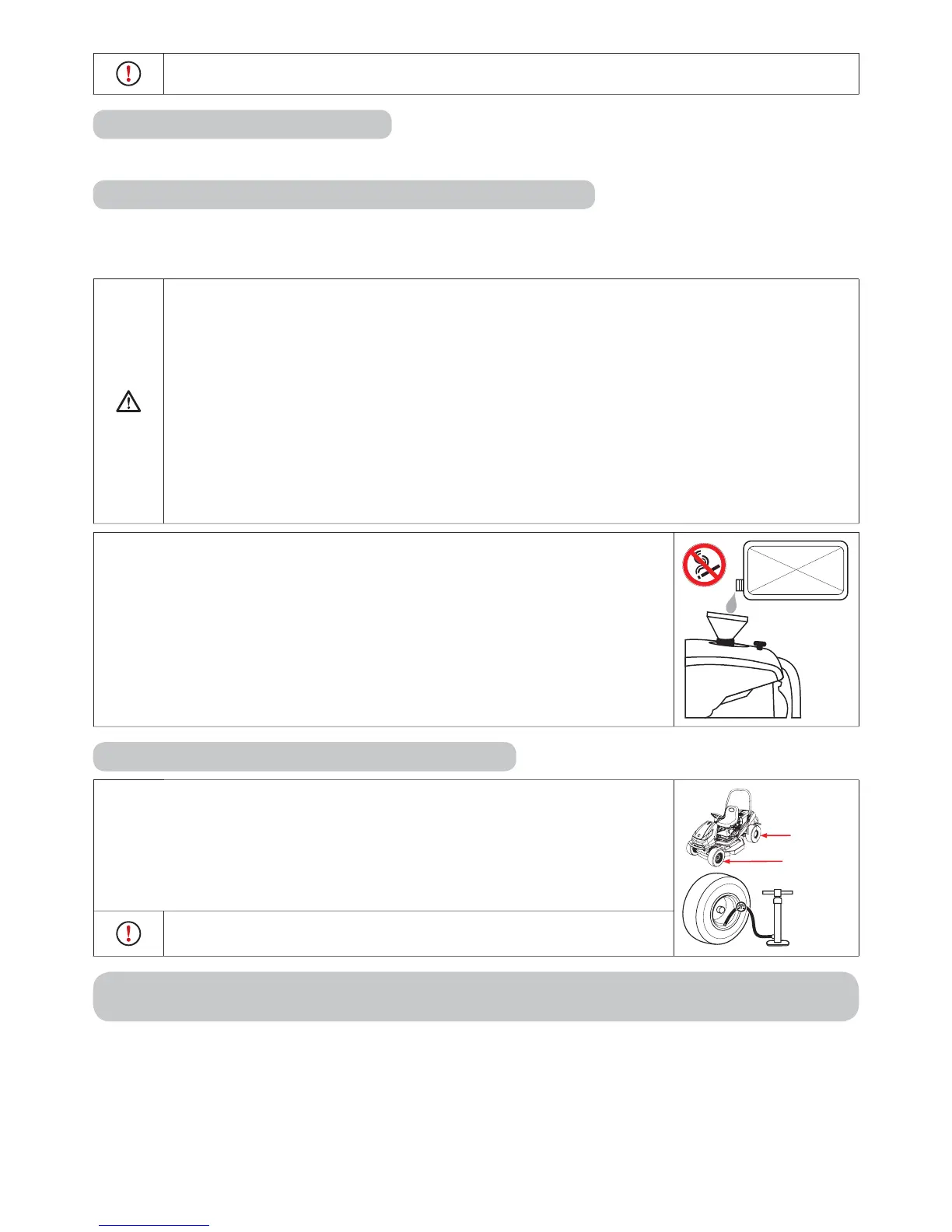 Controleer de bandenspanning, voordat u de machine in gebruik neemt.
