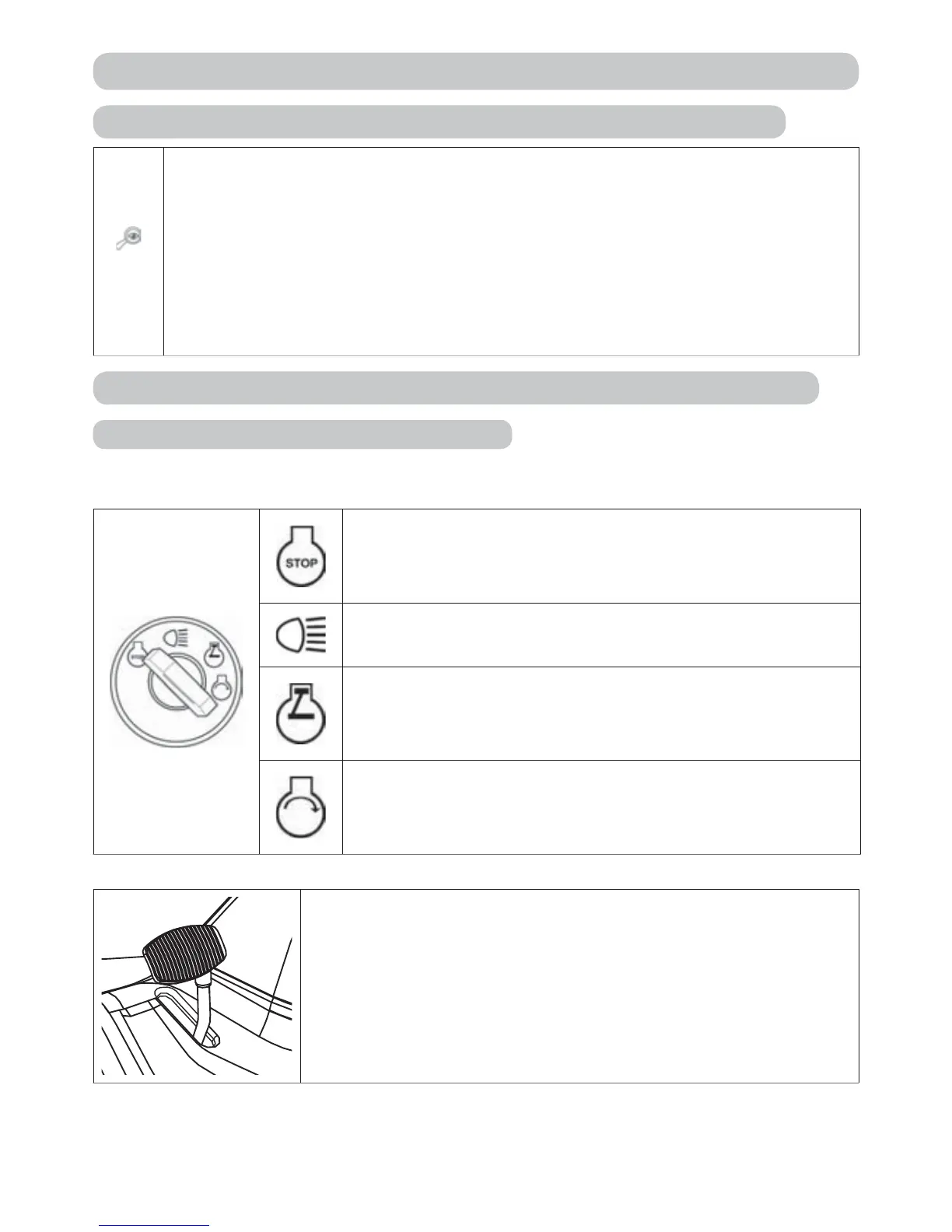 Voor het starten / uitzetten van de motor. Deze schakelaar heeft de volgende 4 posities: