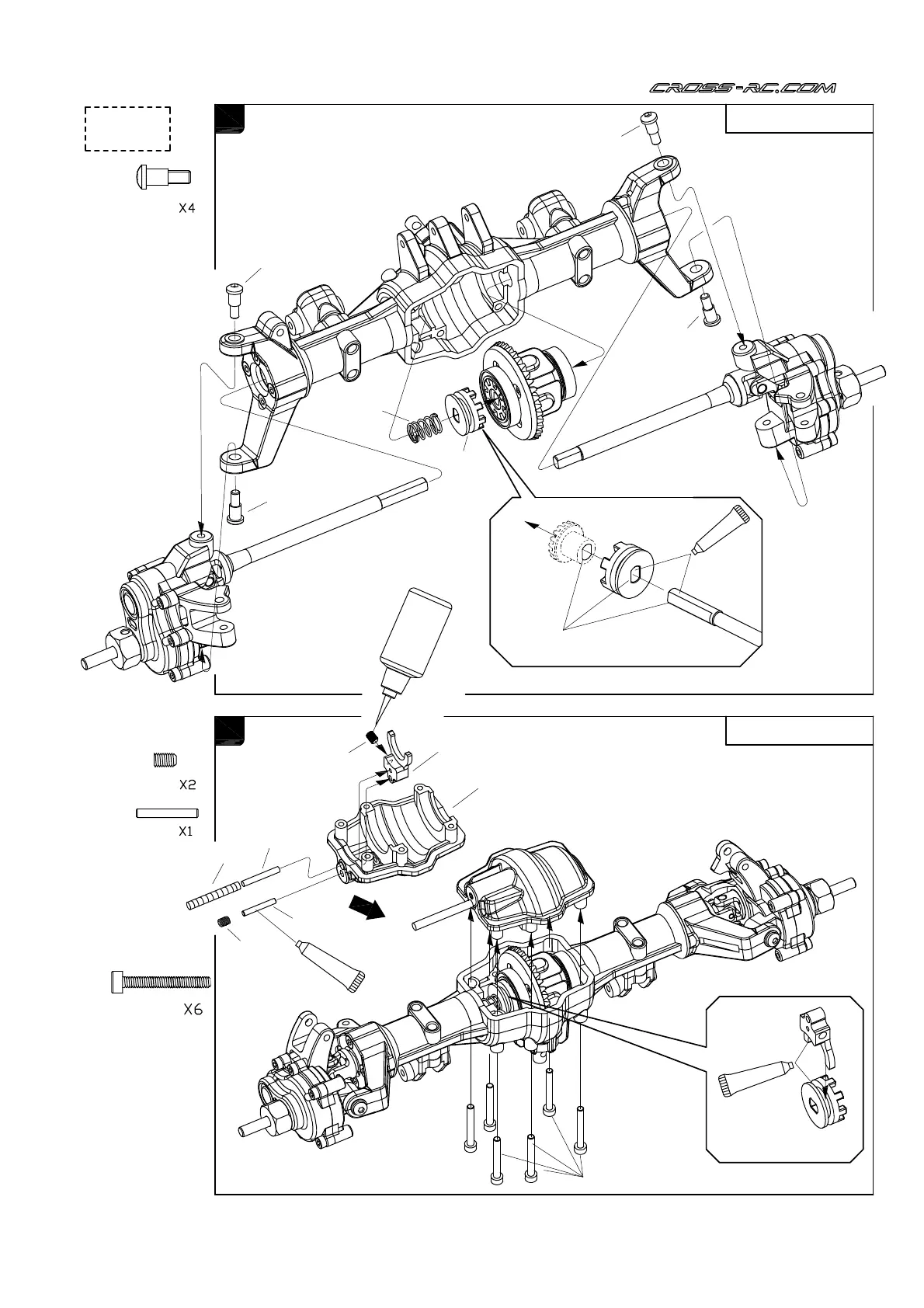CROSSRC EMOX2 - Front Axle Assembly; Front Differential Housing Assembly; Axle Shafts and Connectors