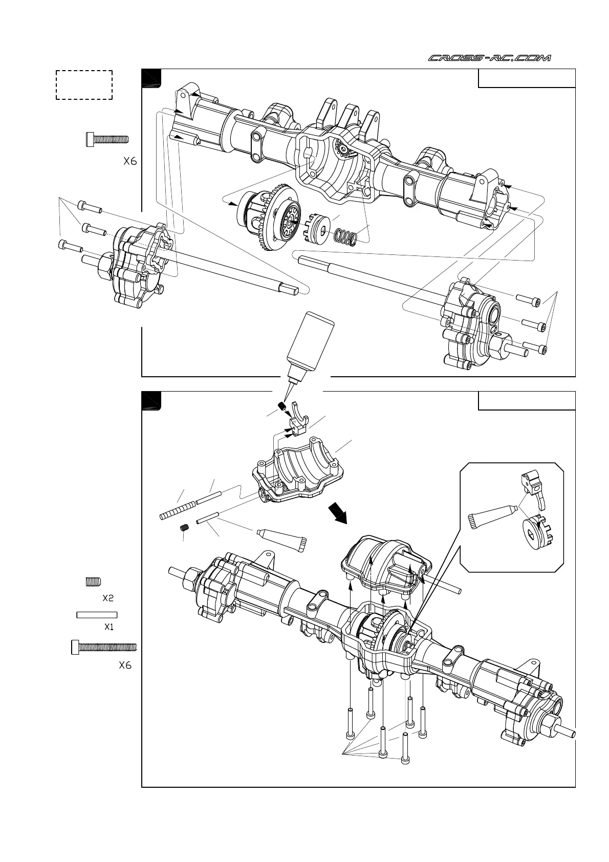 CROSSRC EMOX2 - Differential and Drive Shafts; Differential Gear Installation; Drive Shaft Connection