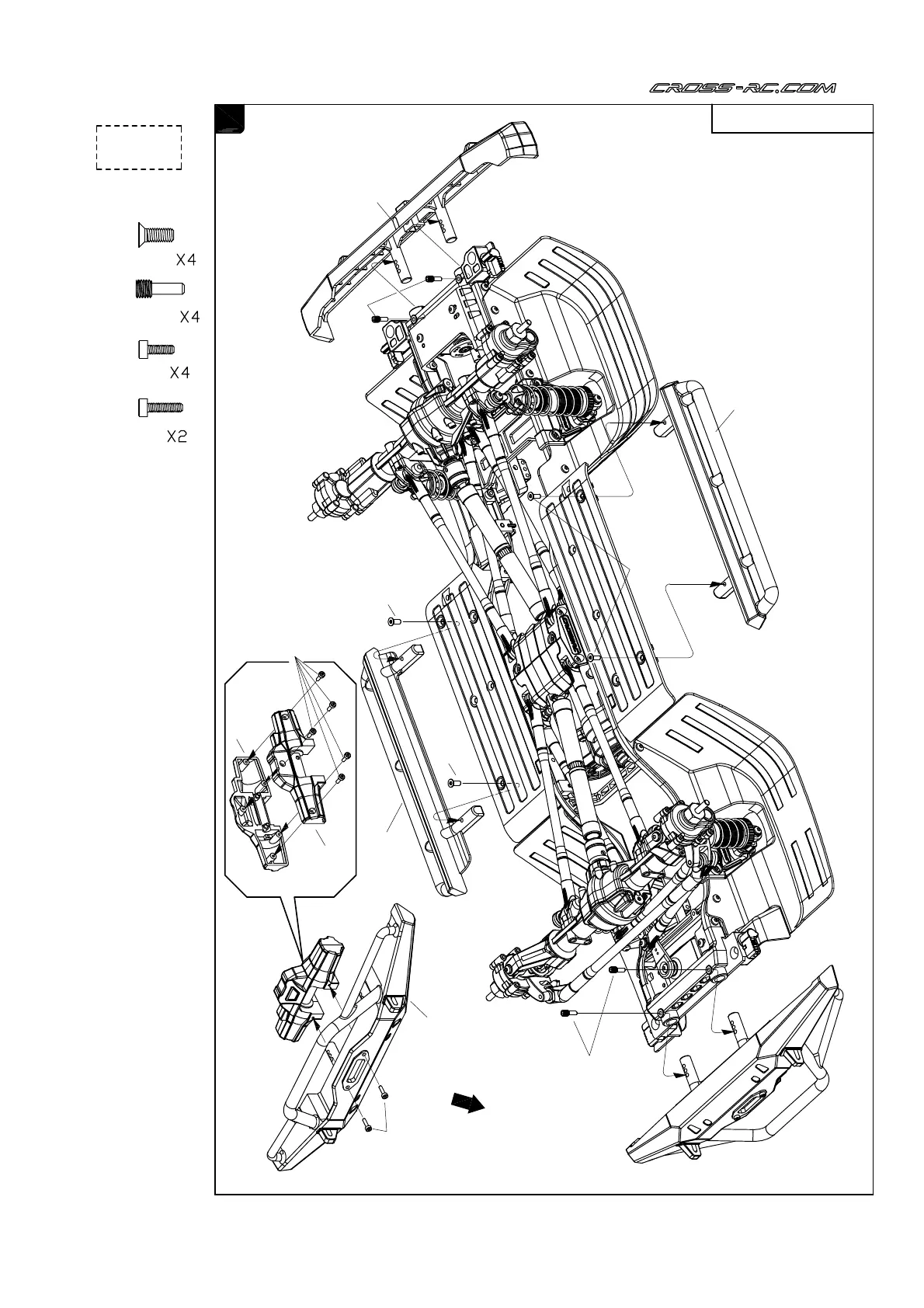 CROSSRC EMOX2 - Chassis Assembly: Body Shell Attachment; Lower Body Panel Mounting