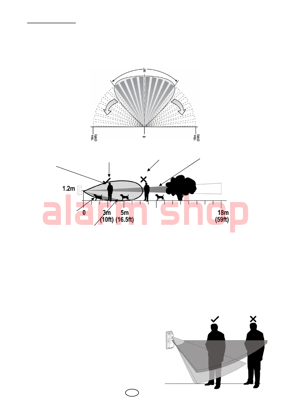 A. Lower PIR element which is fixed to 18m range and 60cm above ground level which helps