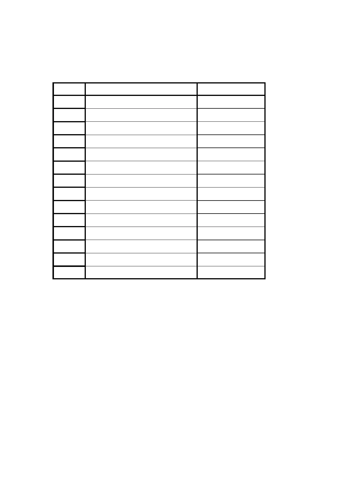 The chart below lists the possible current alarms that could be shown in memory.