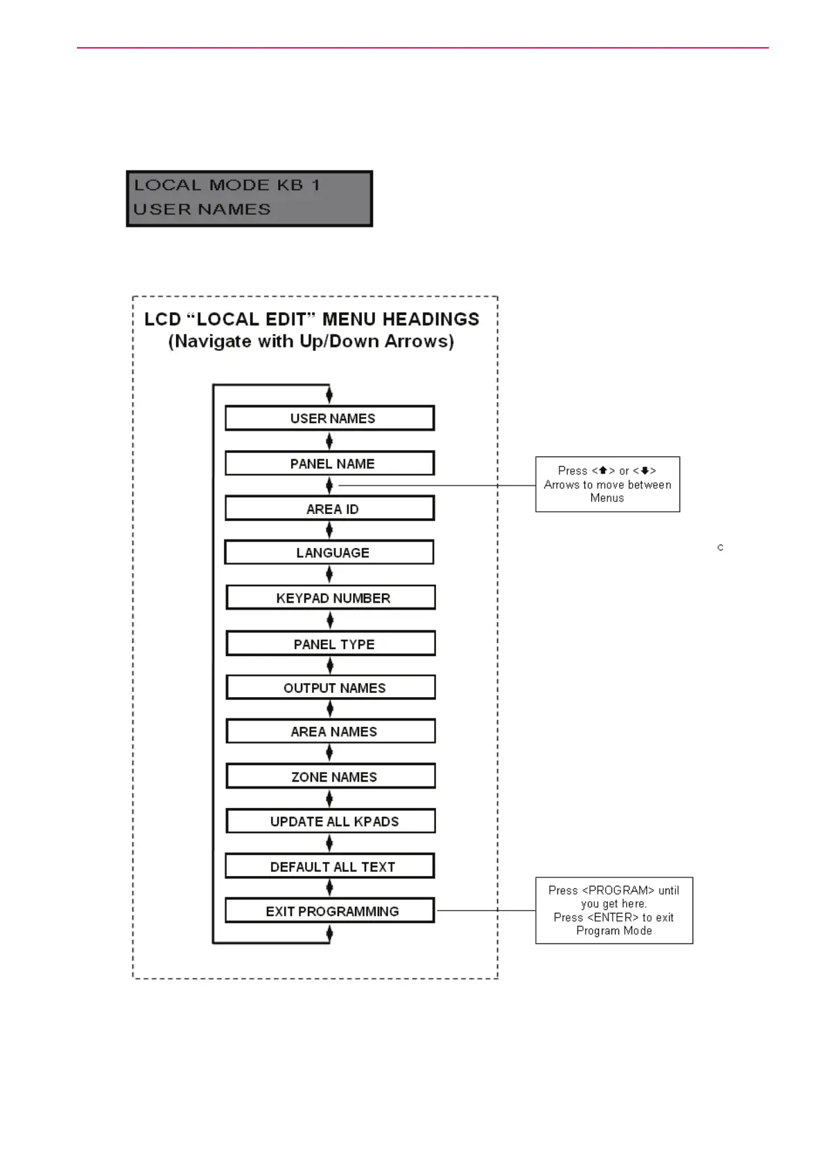 Crow Runner Series - LCD Keypad Customization (Continued); LCD KEYPAD LOCAL EDIT MODE MENU PROGRAMMING