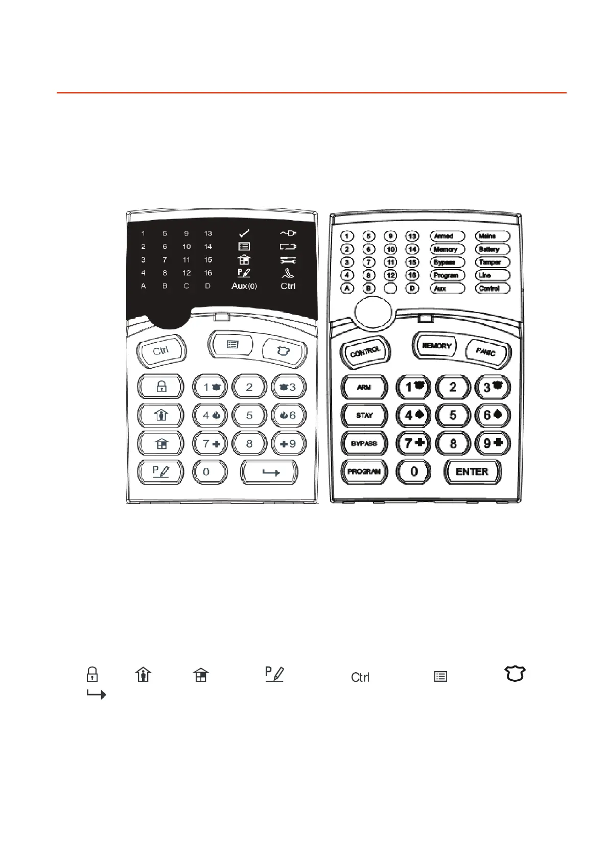 These keys are used to arm the system, enter commands to alter system settings, or scroll
