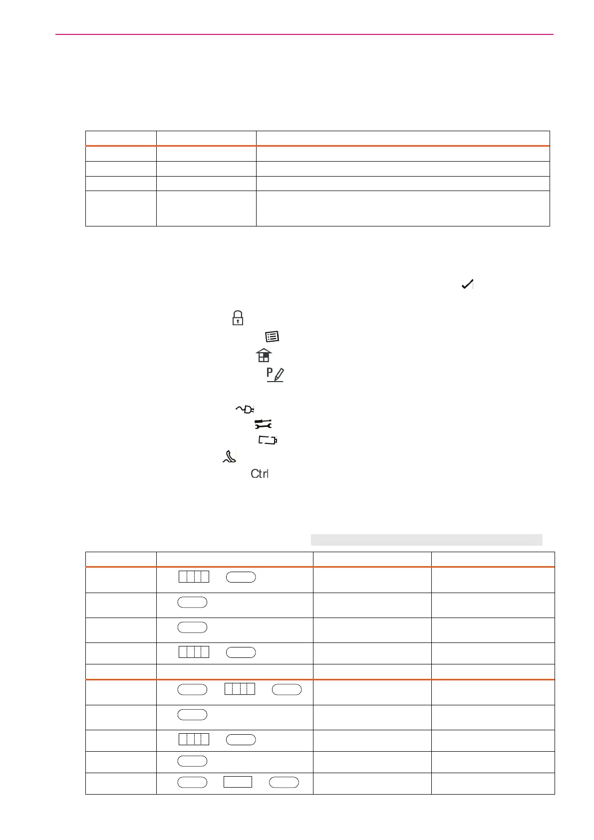 The system's main functions are listed in table (for LCD symbol the function are the same)