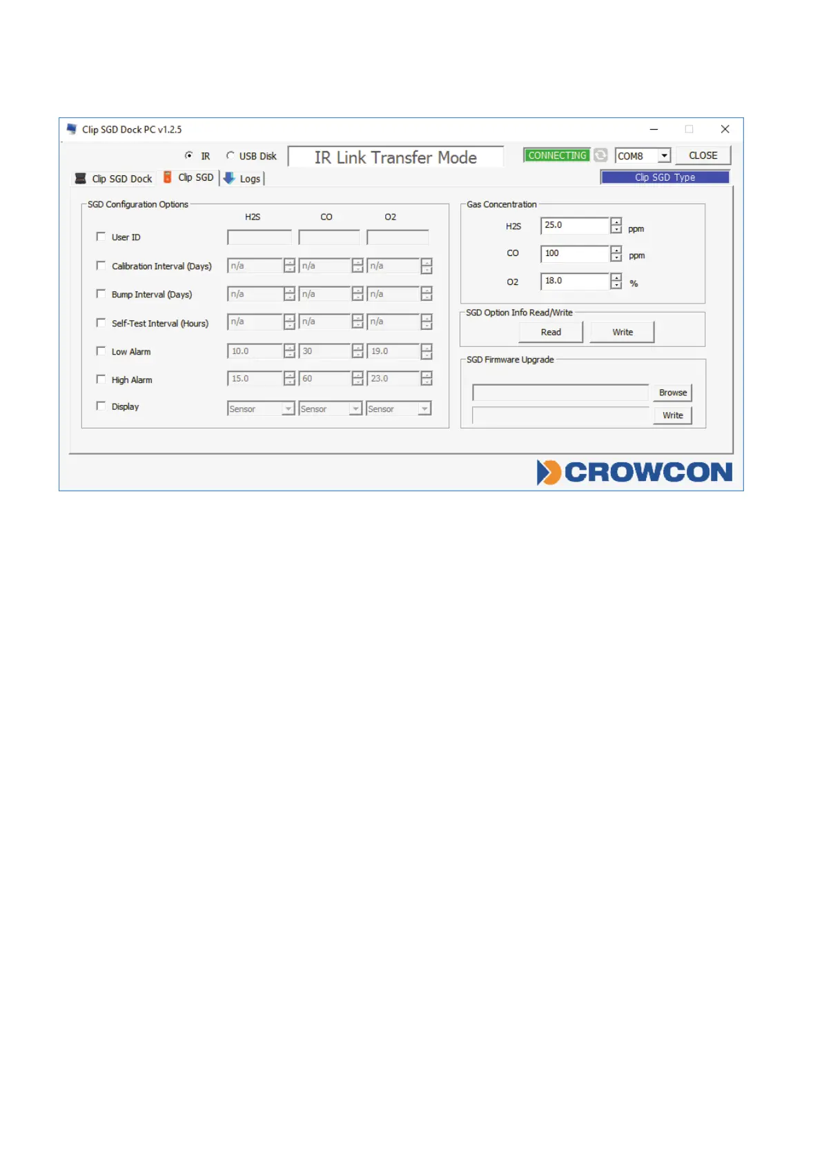 • Display:ChooseforClipSGDtodisplayeithergasreading(“Sensor”)orinstrumentlife
