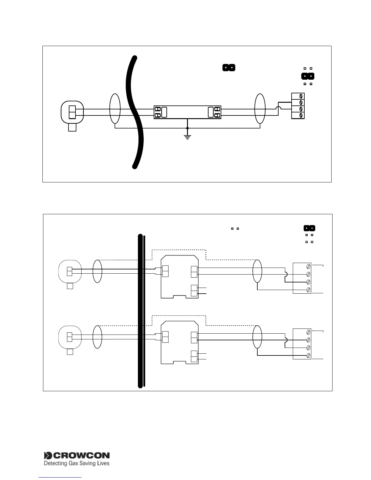 Figure 2.7 Typical connections for 2 wire I.S. detector with Zener barrier, 4-20mA/Fire input module Set channel link