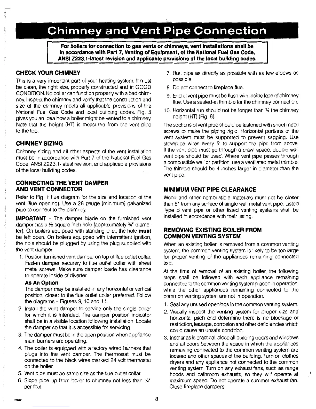 Crown Boiler JBF-EID - Chimney and Vent Pipe Connection