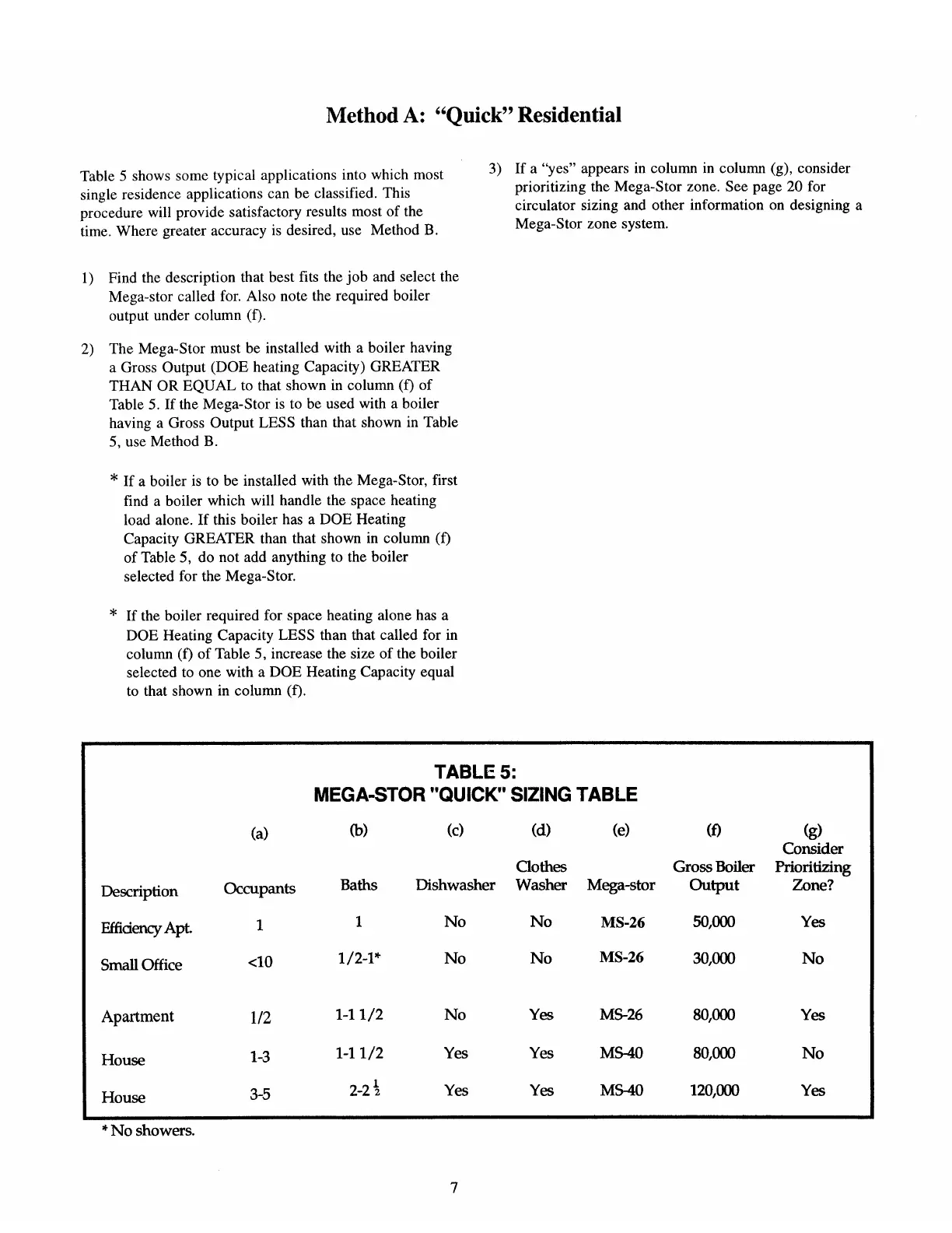 Crown Boiler Mega-Stor - Quick Residential Sizing
