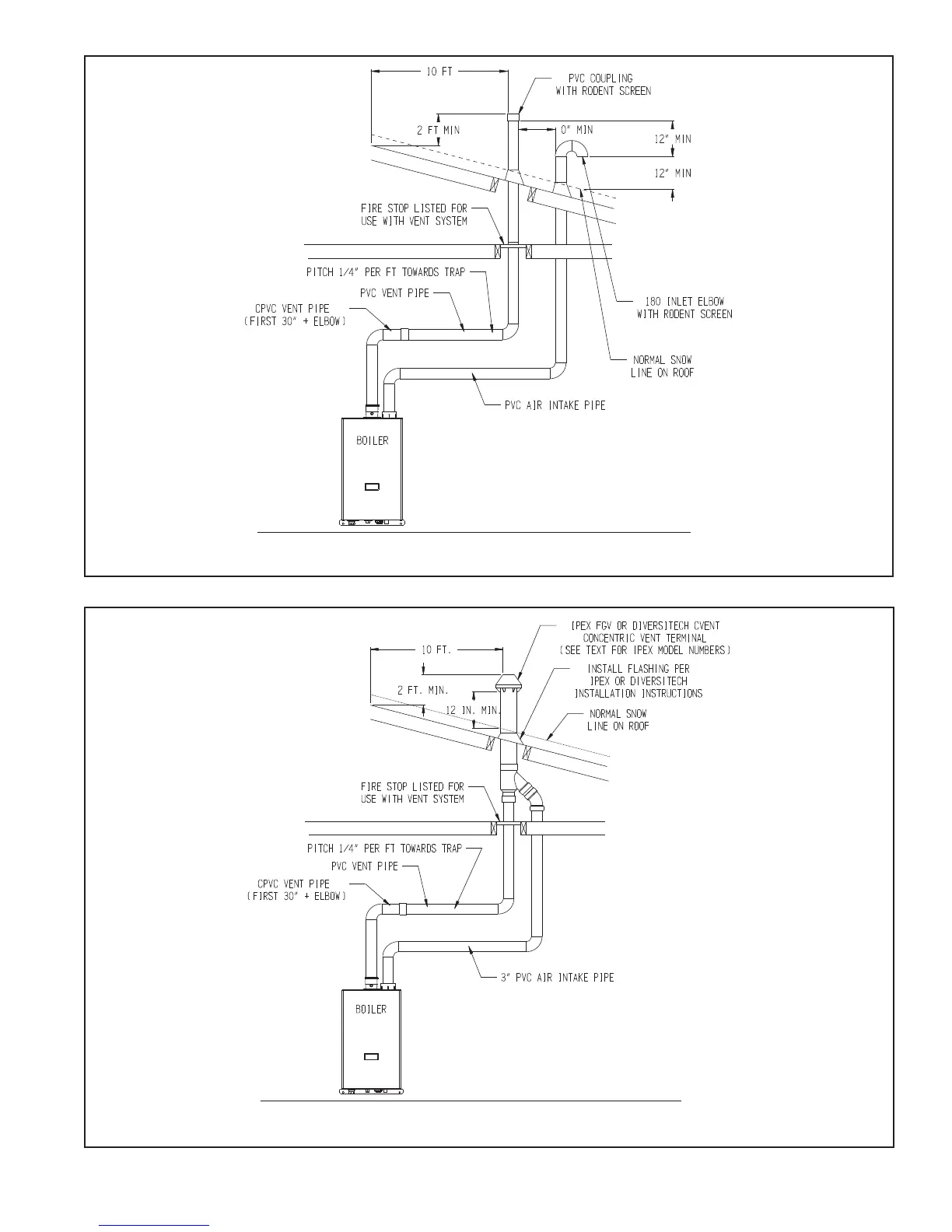 FIGURE 7.15: VERTICAL CPVC/PVC VENTING, (VENT OPTIONS 10 & 11, TERMINAL OPTION H)