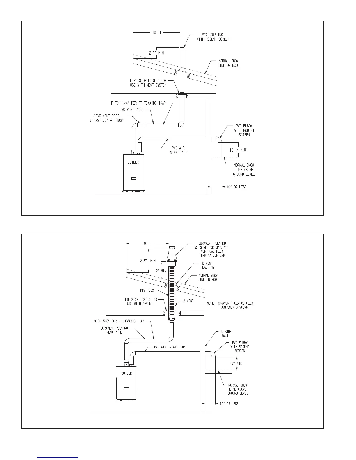 FIGURE 7.22: SPLIT RIGID VENT SYSTEM (VENT OPTIONS 25-32 - CPVC SYSTEM SHOWN IN ABOVE EXAMPLE)