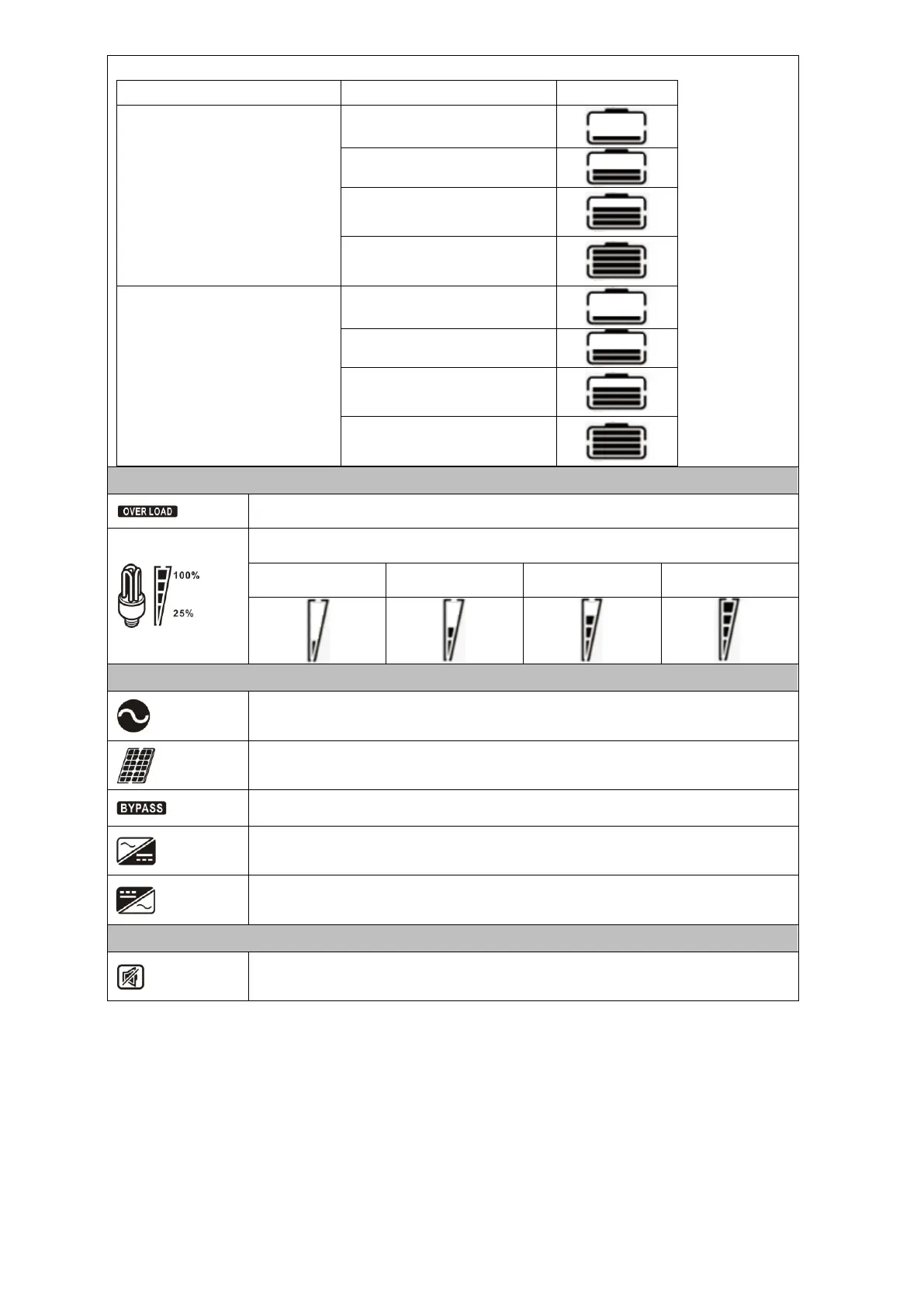 Indicates the load level by 0-24%, 25-49%, 50-74% and 75-100%.