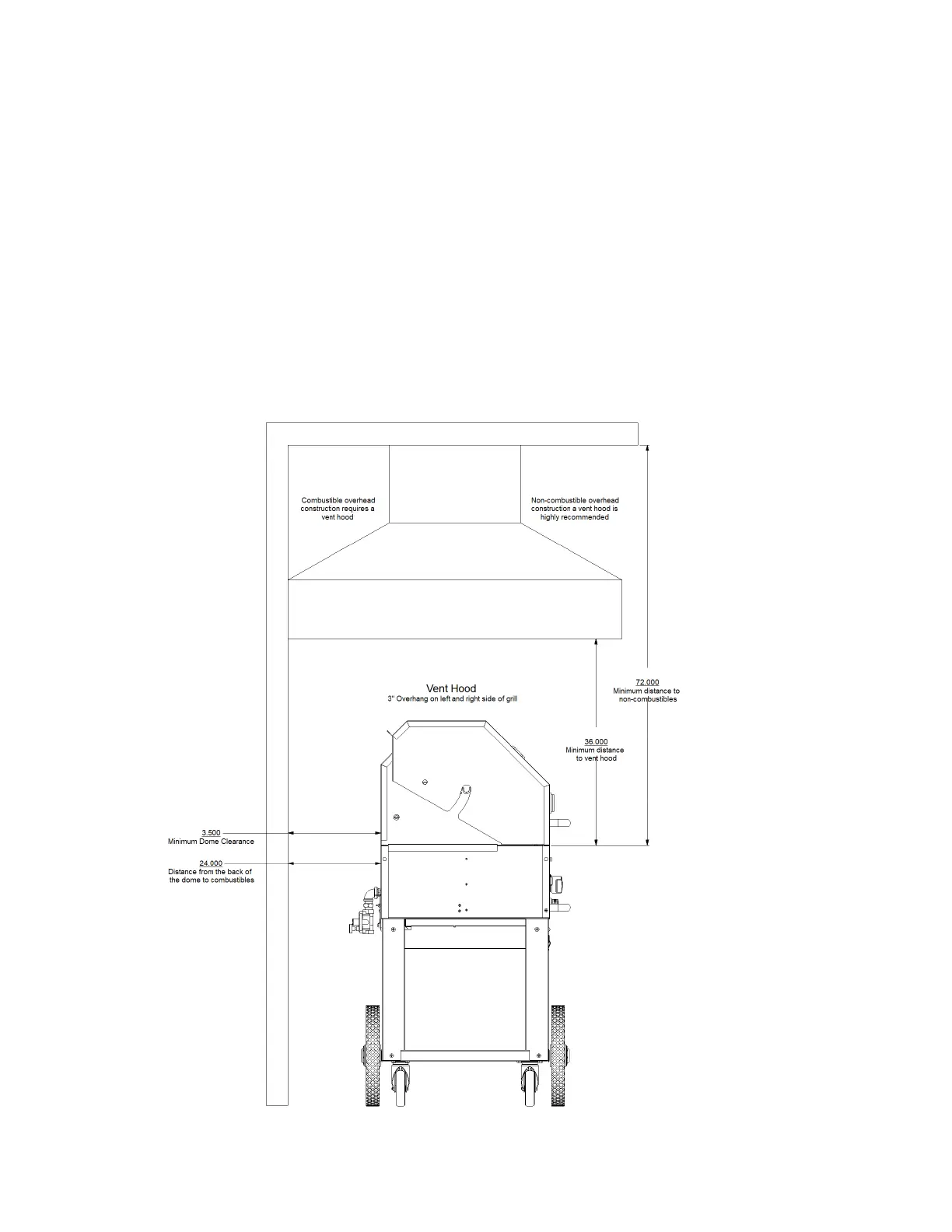 MUST be covered with an exhaust hood. The hood must provide 6 inches (15.2 cm) of overhang