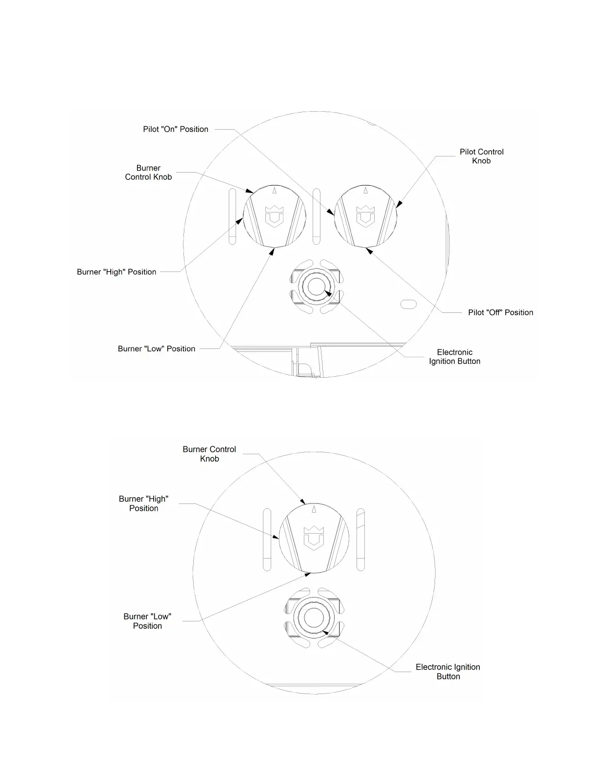 FIGURE 14. VALVE POSITIONS FOR GRILLS WITH ELECTRONIC IGNITION