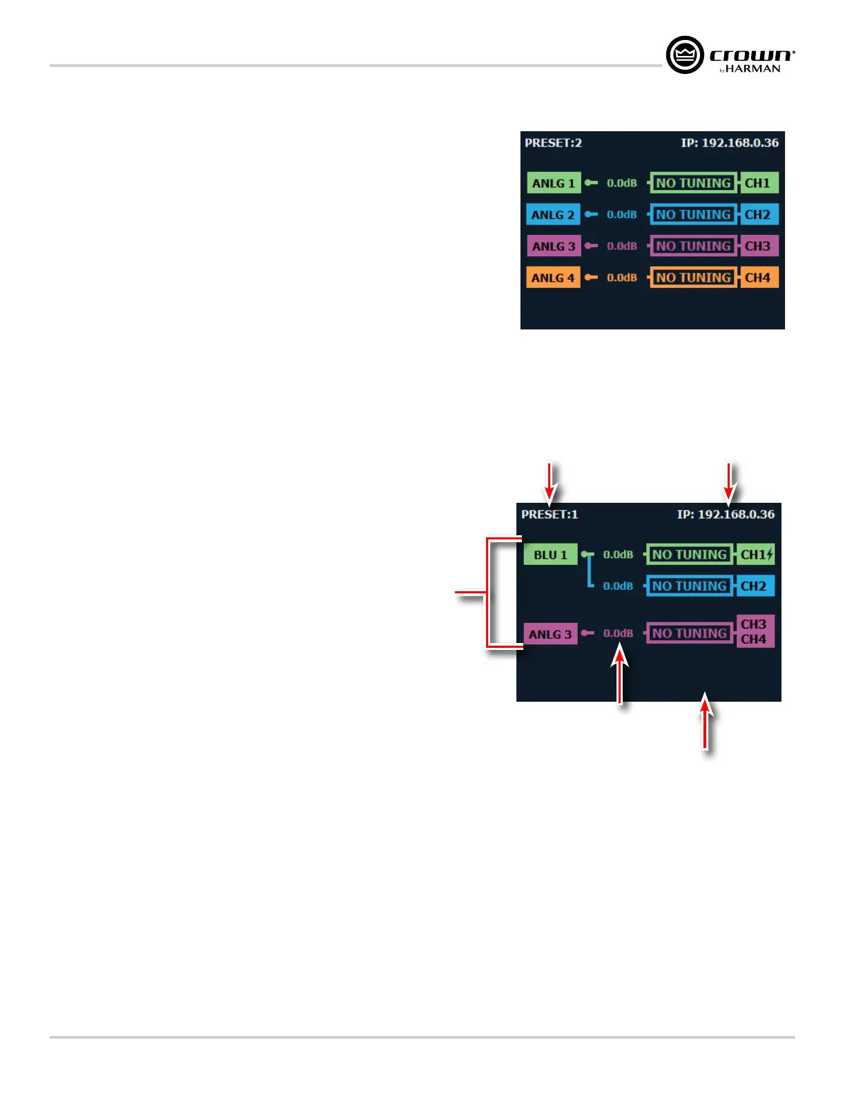 Figure 9. Here you can see the currently loaded device preset, device IP address, CDi