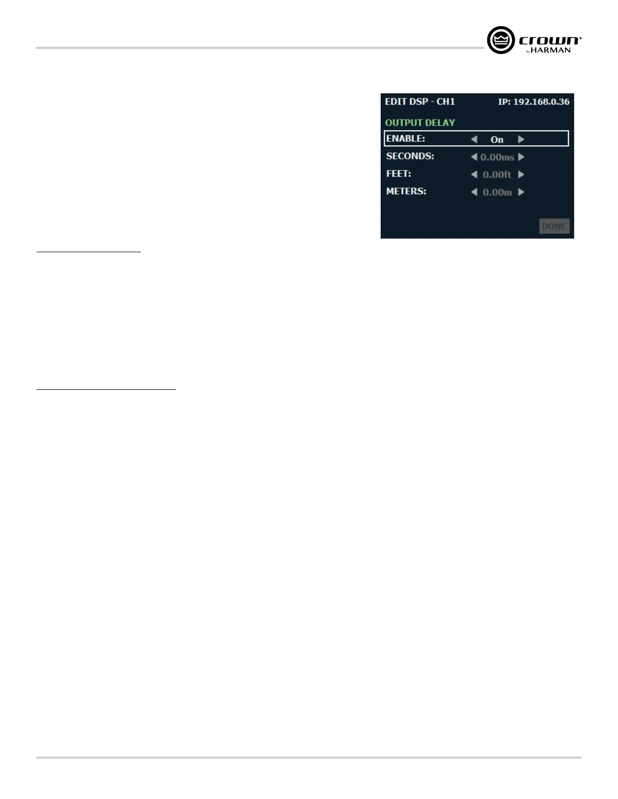 additional 1 second of delay time for each channel. Delay can be adjusted in milliseconds,