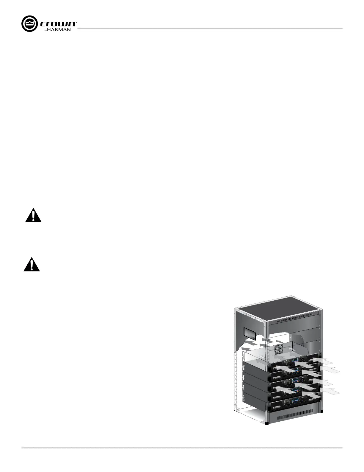 The rack should be a minimum of 2 inches (5.1 cm) away from the amplifier, and the back of