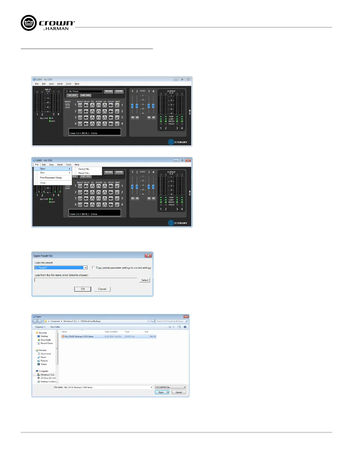 3� Select "File | Open | Device File” to open a device file. Or, select "File | Open | Preset File” to open a preset file.