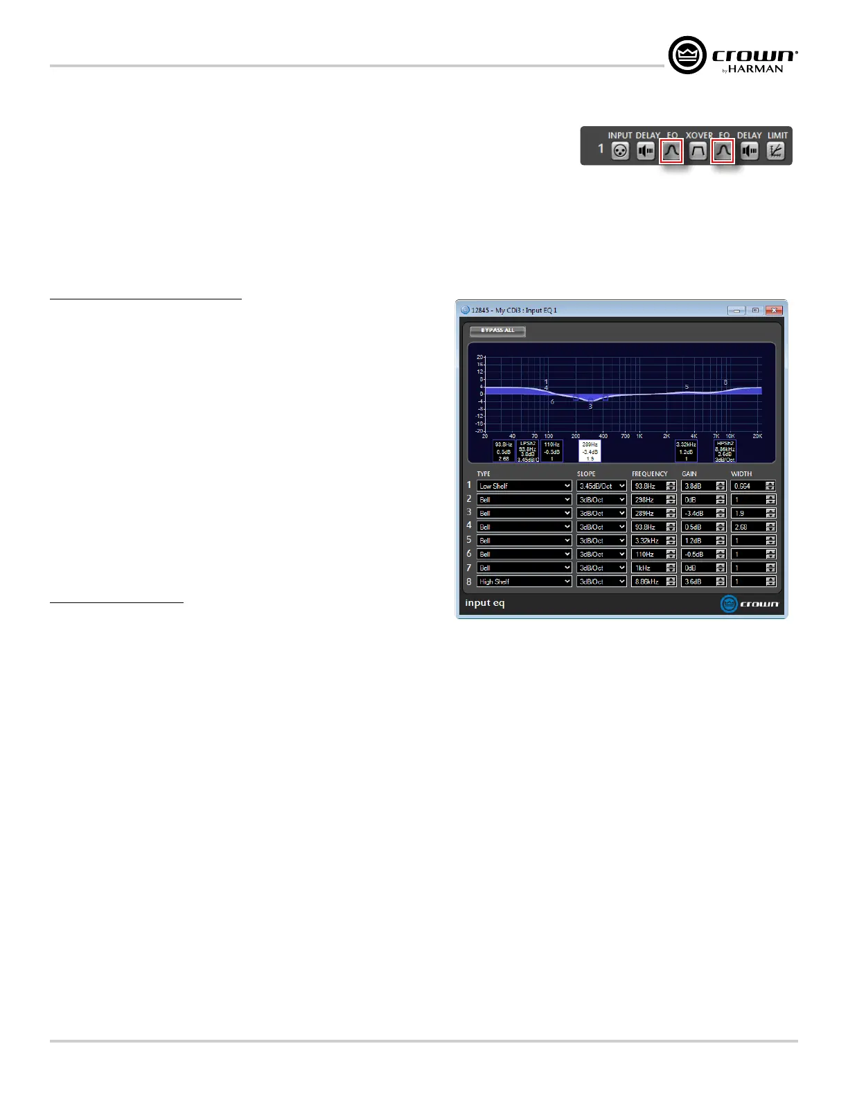 additional filtering if required for the application. The Input EQ panel can be accessed by clicking the