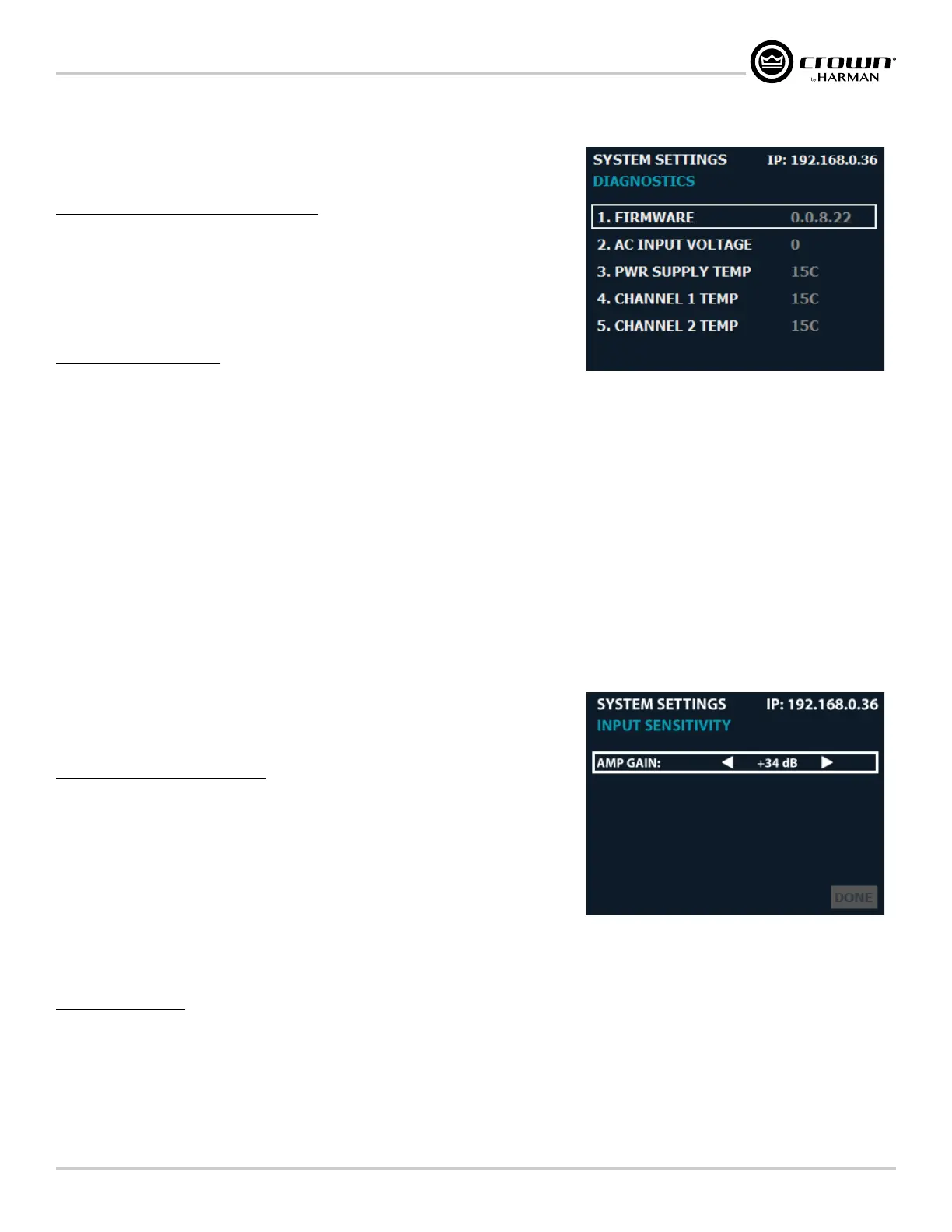 (from input to output) and can be set from the Amp Gain Mode screen.